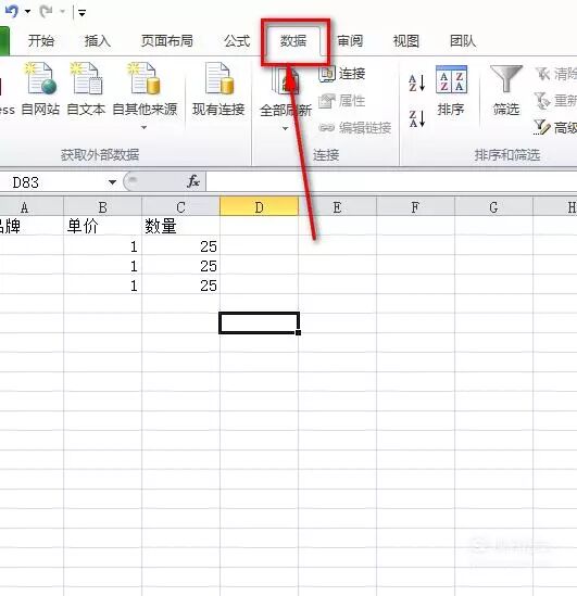 如图,接着点击“数据”菜单。